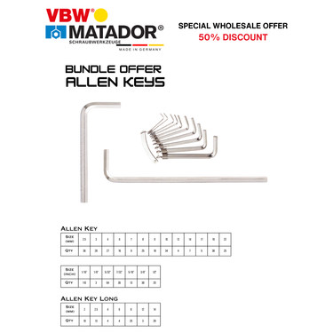 ✔ Allen Keys – 605 pcs (Metric and imperial sizes for hex fasteners)